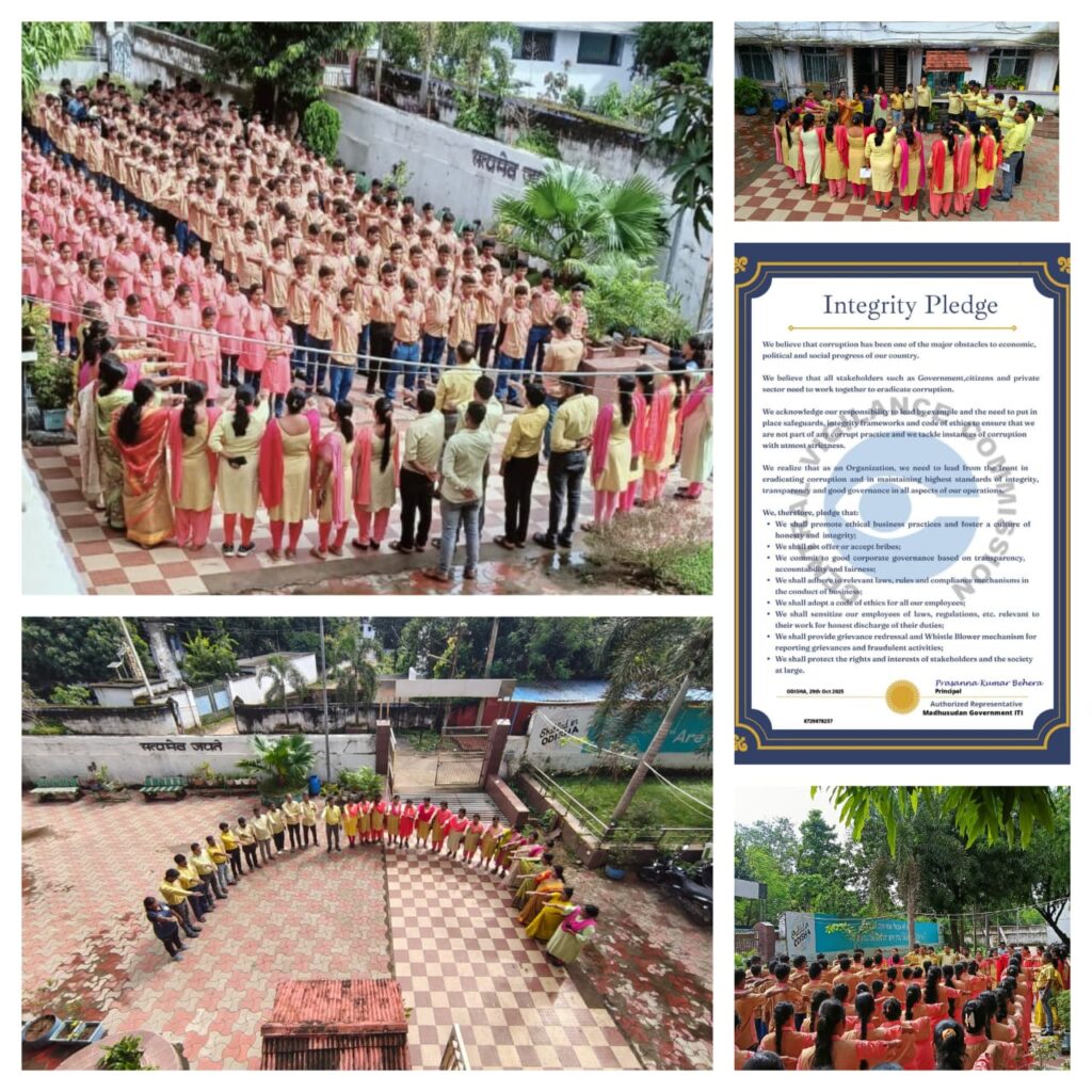 Madhusudan Govt. ITI observed Vigilance Awareness Week with a pledge-taking ceremony on October 30th, 2025. Students and staff participated in the pledge, promoting integrity and transparency. Principal Shri Prassana Kumar Behera addressed the gathering, highlighting the importance of vigilance and combating corruption.